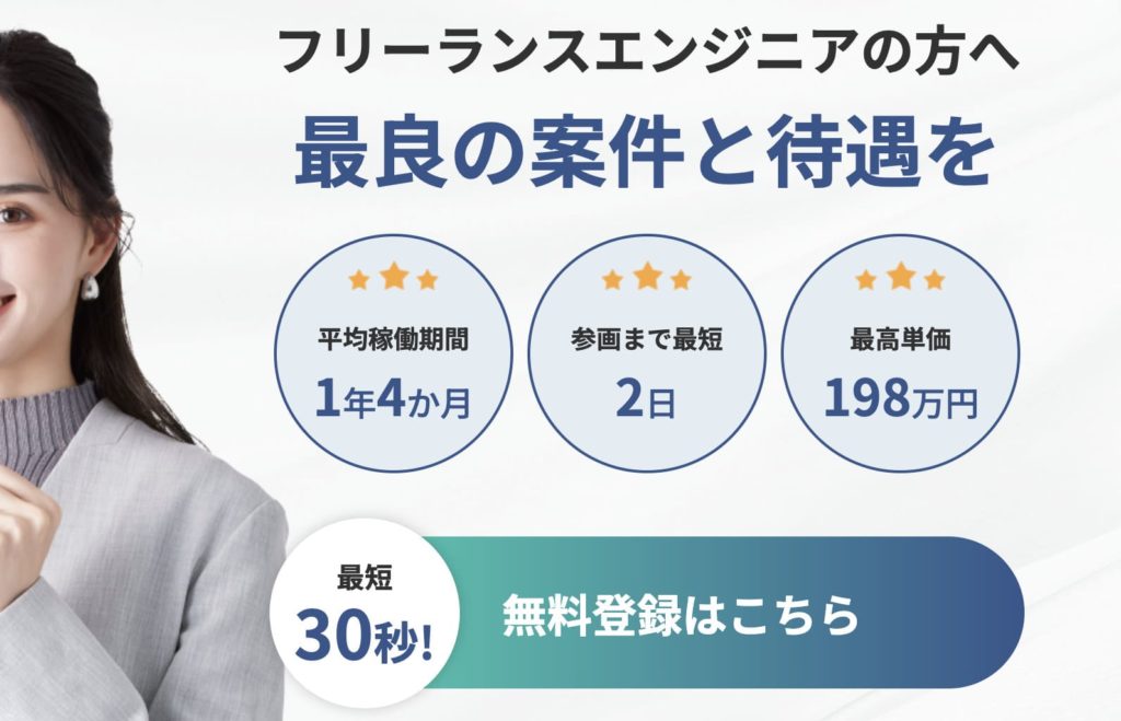 登録エンジニアの平均年収は881万円で、月収100万円以上稼ぐエンジニアも多数在籍しています。利用者の半数が初めてフリーランスになる方なので、フリーランス初心者にもおすすめです。