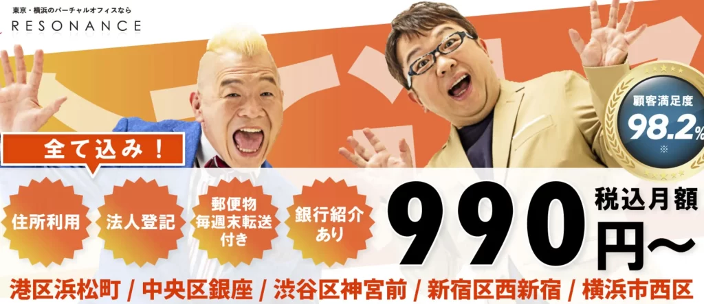 「レゾナンス」 東京一等地の住所を月額990円で法人登記可能
