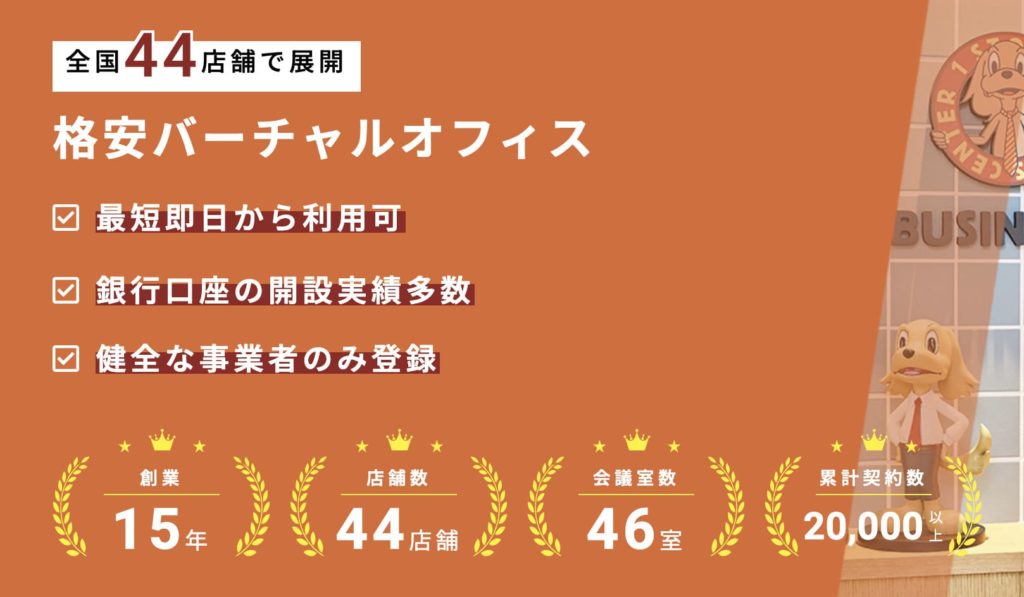 | サービス内容 | 法人登記 / 電話転送・代行サービス / 郵便物受け取り・転送など |