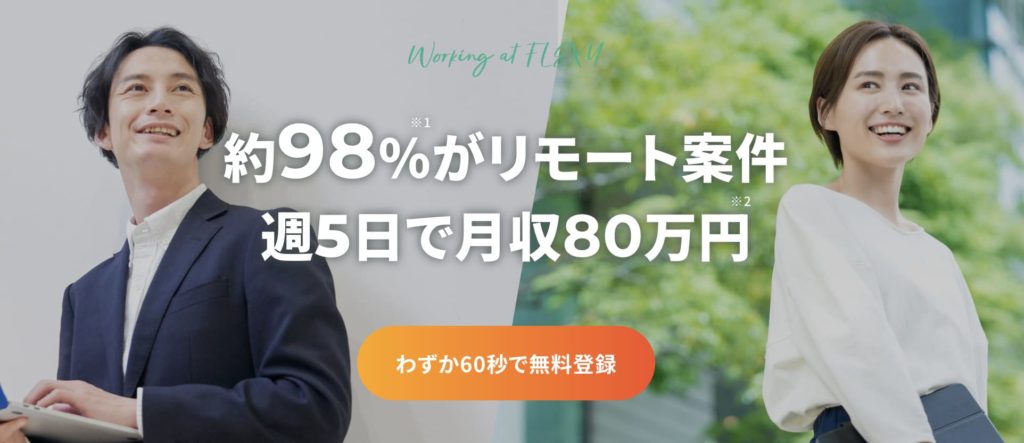 特に「レバテックフリーランス」はエンジニアのフルリモート案件数が業界No1であり、フルリモート・週2日稼働でも20万円/月以上の案件が見つかるのでぜひチェックしてみてください。