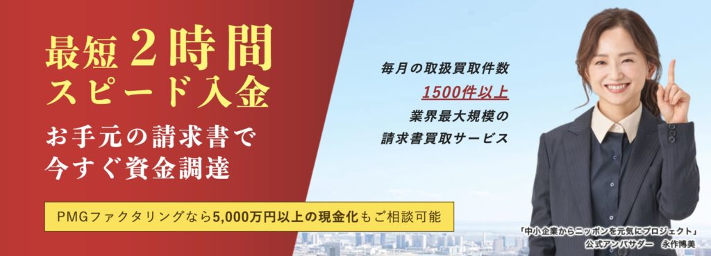 PMG」は、法人向けのファクタリングサービスであり、2社間・3社間ファクタリングに対応しています。